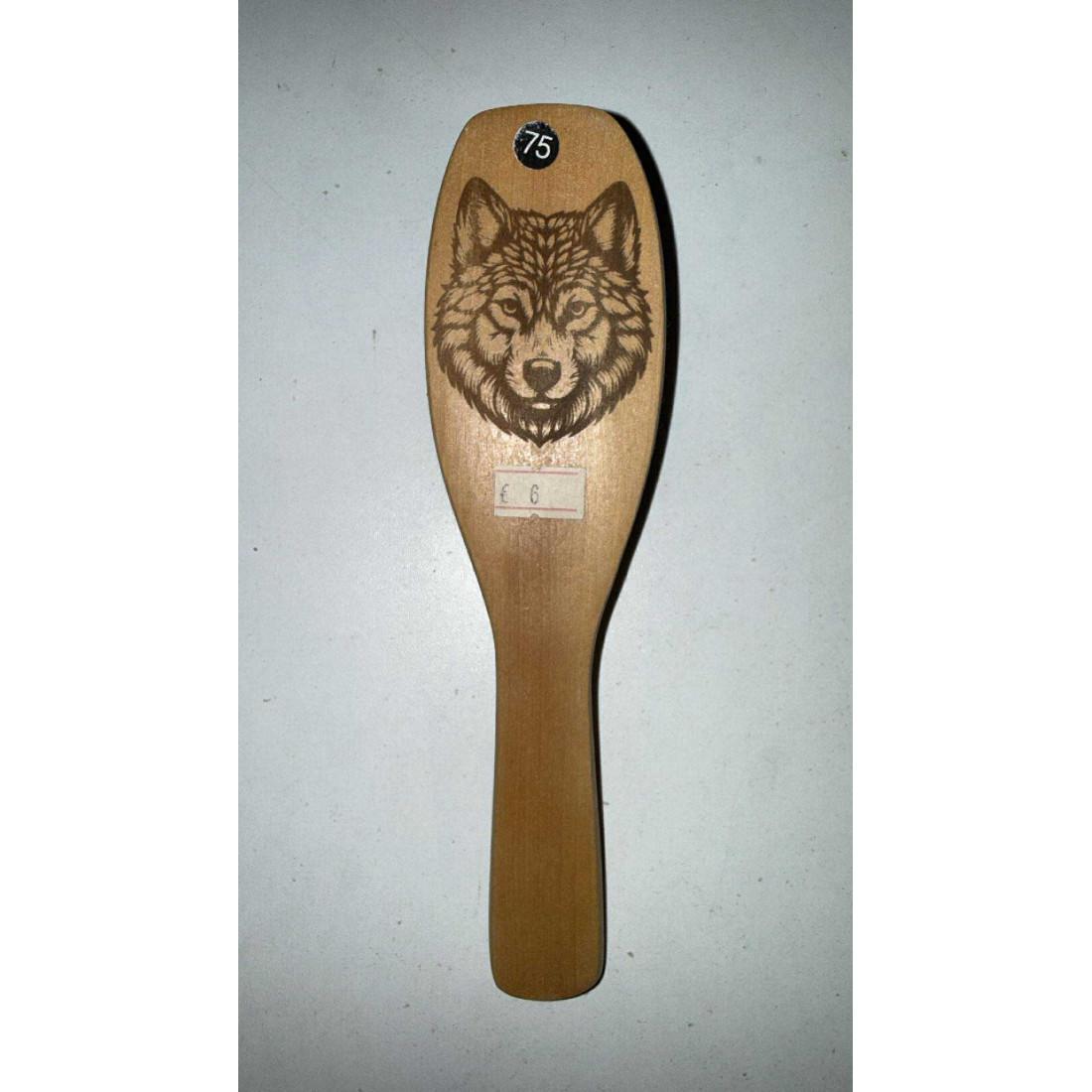 Brosse à Cheveux Loup Bois / Plastique gravure